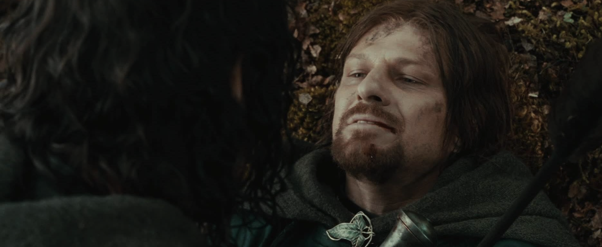 보로미르는 이미 섭정인 아버지의 정치가 실패했으며, 왕국의 국민들이 고통받고 있다는 걸 알아요. 그걸 어떻게든 해결해 보려고 전쟁의 앞단에서 맞서 싸우려 하죠. 어딘선가 죽어버린 왕족의 핏줄은 국민을 내버린지 오래고, 자신이라도 사람들을 지켜야 한다고 믿어요.