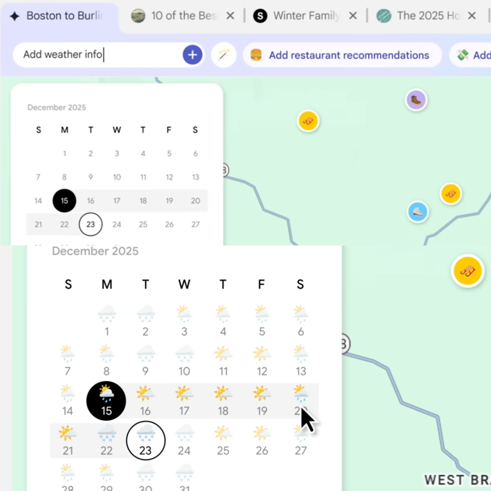 "날씨 정보를 추가해 줘"라는 명령으로 달력 UI 내에 날씨 정보가 바로 추가 되는 모습입니다. (이미지: 구글 디스코(Disco))